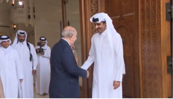 كما قام أمير قطر بتوديع رئيس الجمهورية عبد المجيد تبون بعد محادثات رسمية جمعت الطرفين