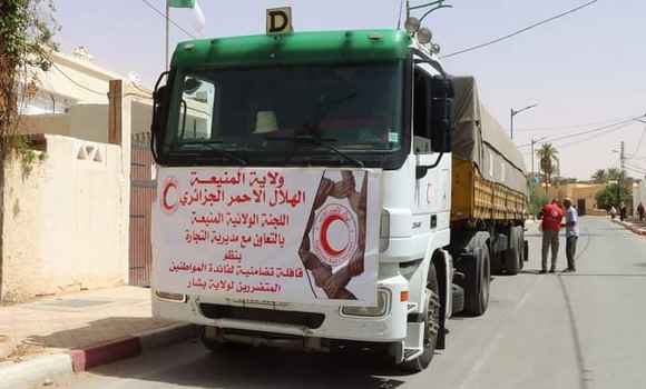 وجاءت هذه القافلة الإغاثية التي أشرف على إعطاء إشارة انطلاقها والي الولاية مختار بن مالك تلبية لإحتياجات السكان المتضررين بولاية بشار.